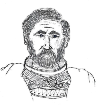 Of middling height and build, his dark curly hair speckled with grey and sporting a short salt and pepper beard, Aldred, Baron of Gorburn, could pass for a moderately prosperous merchant or townsman in his late forties. Aldred's only distinguishing features are piercing blue eyes which glint from beneath bushy black brows and a surprisingly booming voice suited to battlefield command. He dresses predominantly in somber blacks, greys and browns. His clothes are well made but lack the ostentatious style more common amongst Southern nobles.